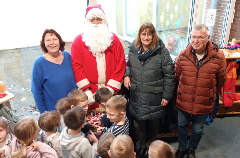 Wenige Tage später war der Weihnachtsmann wieder unterwegs und dieses Mal ging es in den Kindergarten in Eschershausen, um die Kleinen zu beschenken. Wie schon in der Schule begleitete Frau Uerckwitz vom MGH den Weihnachtsmann, auch der stellvertretende Bürgermeister Ritterbusch war dabei. Die Aufregung der Jüngsten war sehr groß den Weihnachtsmann begrüßen zu können und von ihm kleine Geschenke zu bekommen. Schön zu sehen waren die kleinen Äuglein der Kinder, aus denen die helle Freude nur so herausstrahlte. Mit Applaus und einem Dankeschön der Leiterin Anja Weber und aller Erzieherinnen der Kita wurde der Weihnachtsmann verabschiedet.