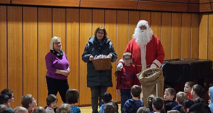 Der Weihnachtsmann beschenkt Grundschüler und Kindergartenkinder