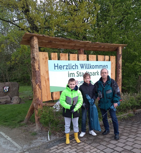Anschließend gingen die beiden Jungs mit in den Stadtpark, um dort den herumliegenden Unrat aufzusammeln. Erstaunlicherweise war der Müllsack nicht ganz gefüllt. Trotzdem kam die Aussage der Jungs:“ Warum wird so viel Unrat liegengelassen und nicht in den Müllbehältern entsorgt?“