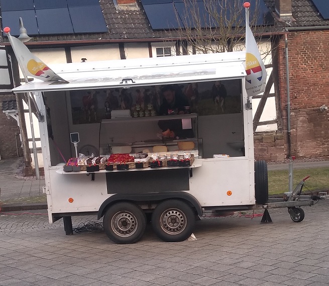 Der Wochenmarkt in Eschershausen wird um einen Käsestand erweitert. Hölländischer Käse in vielen verschiedenen Sorten wird geboten.